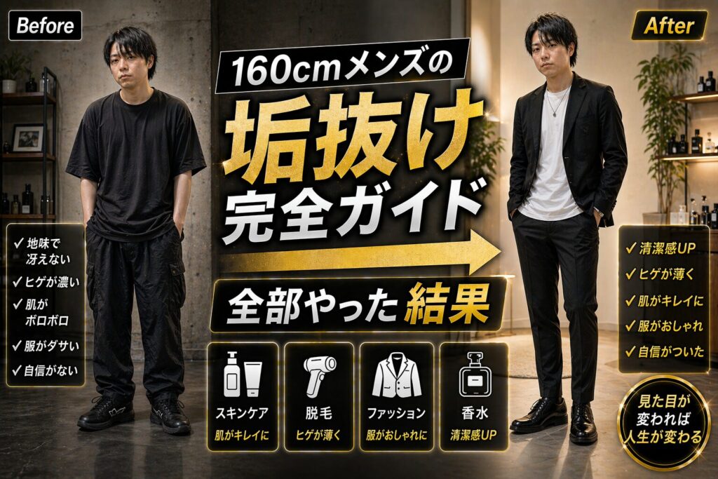 【160cmメンズの垢抜け完全ガイド】スキンケア・脱毛・ファッション・香水を全部やった結果