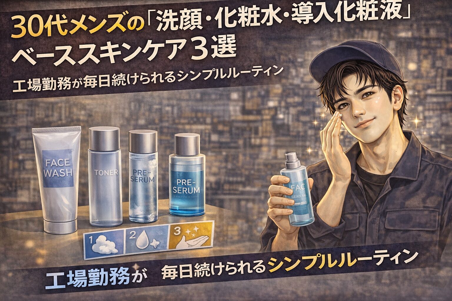 30代メンズの「洗顔・化粧水・導入化粧液」ベーススキンケア3選|工場勤務が毎日続けられるシンプルルーティン