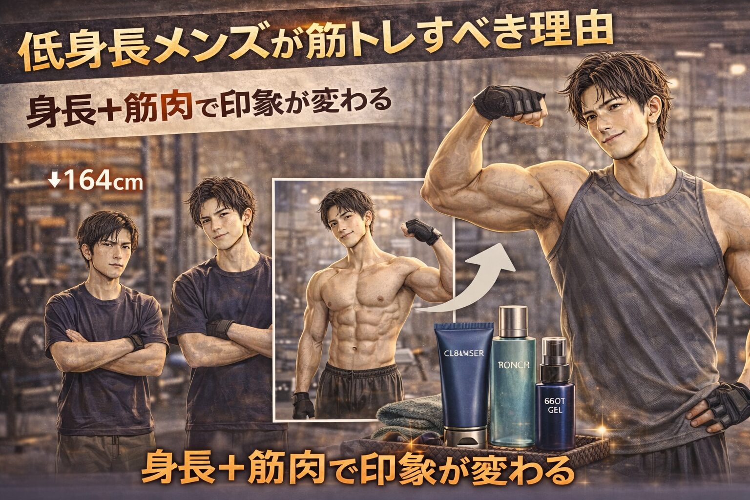 低身長は変えられない。でも体型・姿勢・シルエット・自信は変えられます。しかも低身長の方が同じ筋トレをして筋肉が「目立ちやすい」という明確なアドバンテージがあります。